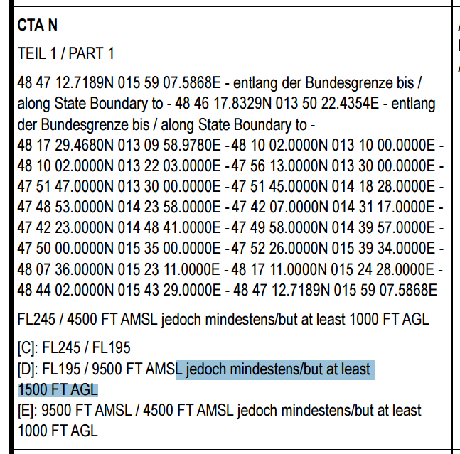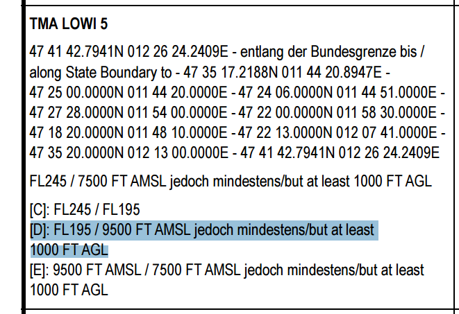 class Delta of LOWI TMA and N CTA – vertical lower limit should include the “or at least 1000 FT GND” and “or at least 1500 FT GND“ minimum, as formulated accordingly in the AIP.
